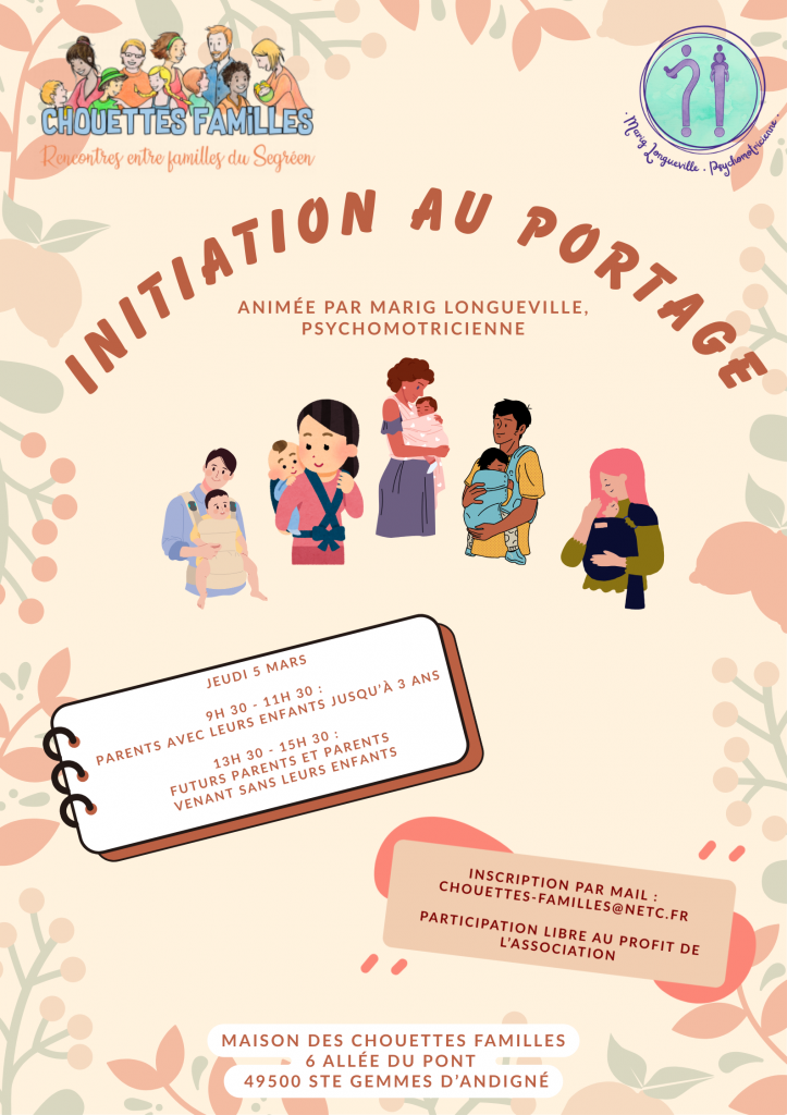 Nous avons le plaisir de proposer aux jeunes parents une initiation au portage, le jeudi 5 mars, à 9h 30 ou 13h 30.